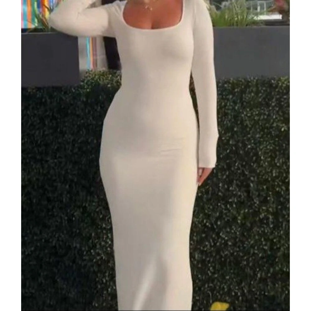 LS-Elegant Kare Yaka Uzun Kollu Beyaz